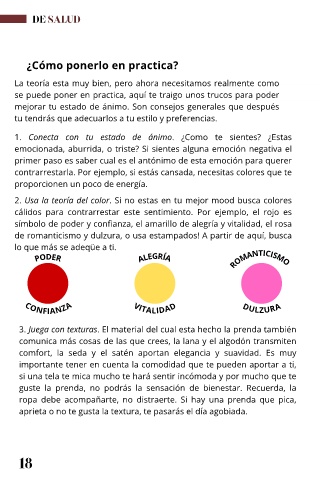 contrarrestarla. Por ejemplo, si estás cansada, necesitas colores que te